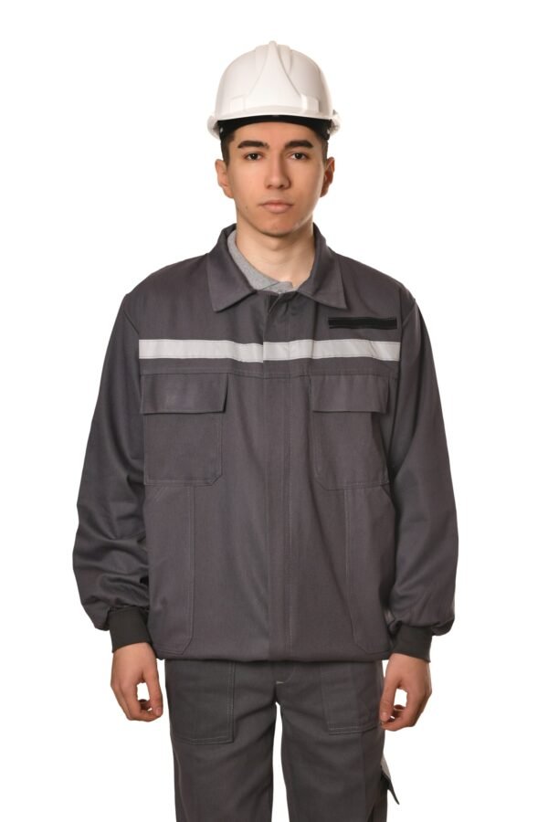 Dayanıklı pamuklu kumaşı ve reflektör detaylarıyla iş güvenliği için ideal gabardin mont.